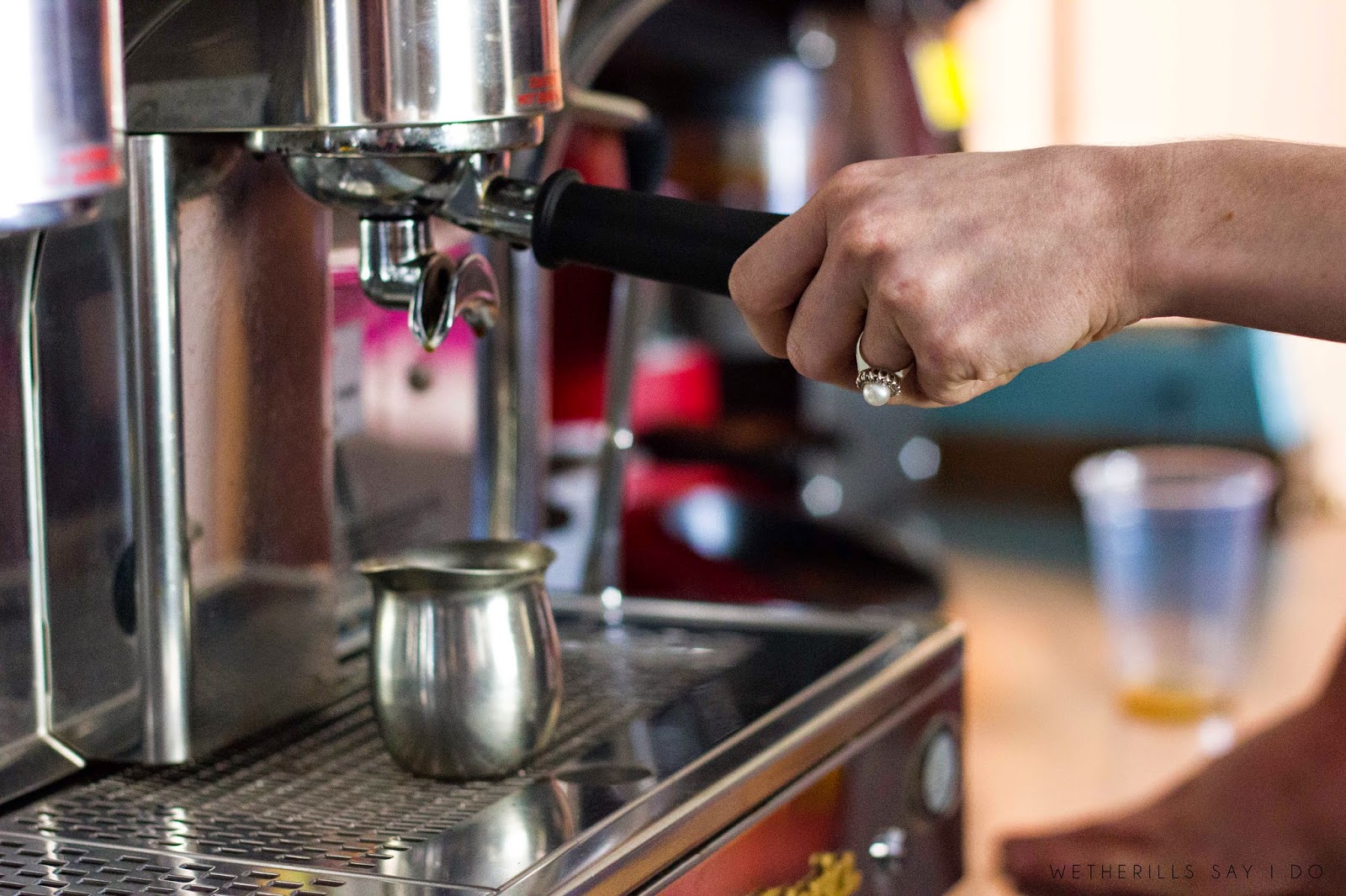 For this shoot, we went to downtown Lexington, NC to a coffee shop that this groom-to-be’s brother owns. It was a place the Aimee and Clay (the couple) hung out at a lot and Clay even worked there. So when we got there I asked him to whip up some drinks for us. That gave me a chance to capture the essence of a place that meant so much to them!